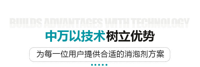 中萬(wàn)是一家以解決各行業(yè)泡沫難題為使命的企業(yè),專注于各行業(yè)不同工藝的泡沫應(yīng)用研究,擁有8大體系成分產(chǎn)品,近2000個(gè)不同行業(yè)、不同細(xì)分領(lǐng)域工藝的成功應(yīng)用經(jīng)驗(yàn)與解決方案,為您的生產(chǎn)工藝保駕護(hù)航。中萬(wàn)在化工泡沫領(lǐng)域扮演著重要的角色,從嚴(yán)謹(jǐn)?shù)倪x料到獨(dú)特的應(yīng)用方案,推動(dòng)著整個(gè)消泡劑行業(yè)的優(yōu)化升級(jí),中萬(wàn)因領(lǐng)先而備受推崇,用技術(shù)成就高效,提方案帶來(lái)卓越,讓服務(wù)適應(yīng)市場(chǎng),中萬(wàn)在消泡劑精益求精的道路上不斷地為客戶謀發(fā)展而開(kāi)拓創(chuàng)造。